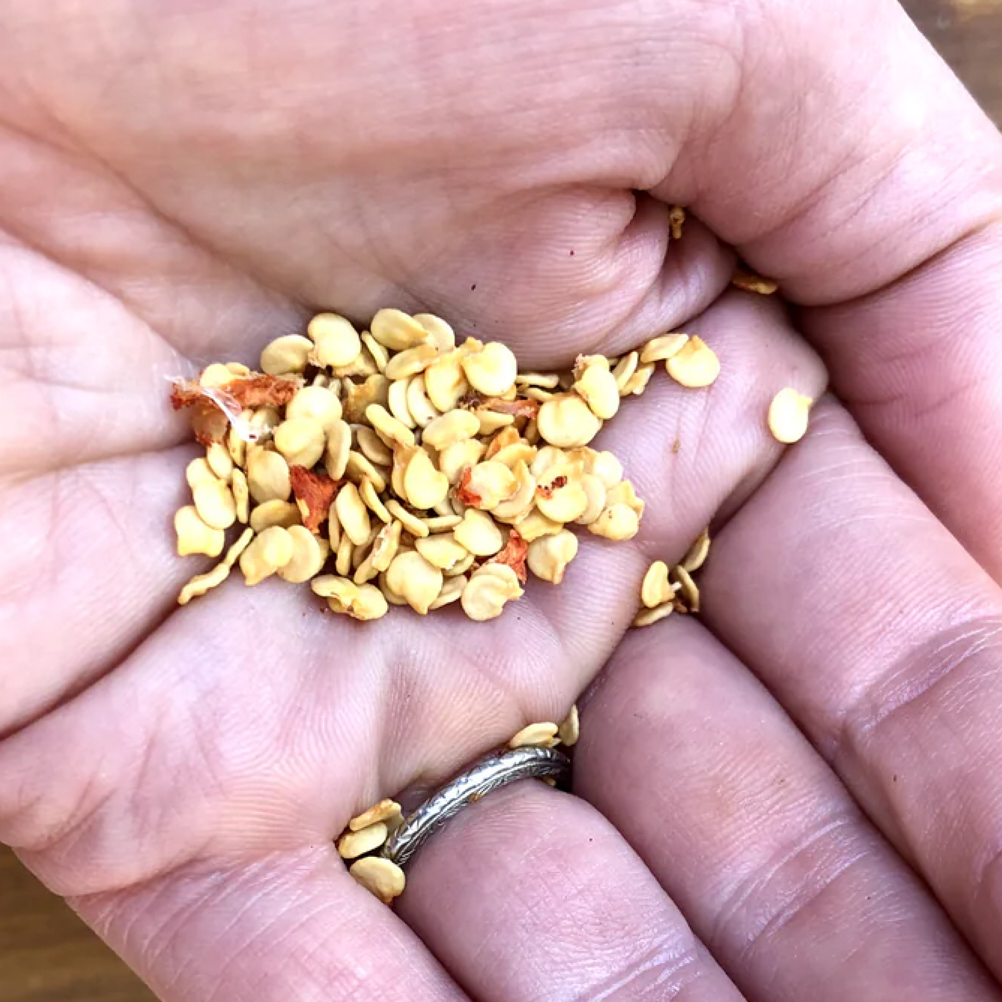Red, orange and brown sweet peppers, many adapted for cool climates, and for limited irrigation. Most of these seeds were grown from last year's mix, with some new varietals and landraces mixed in.