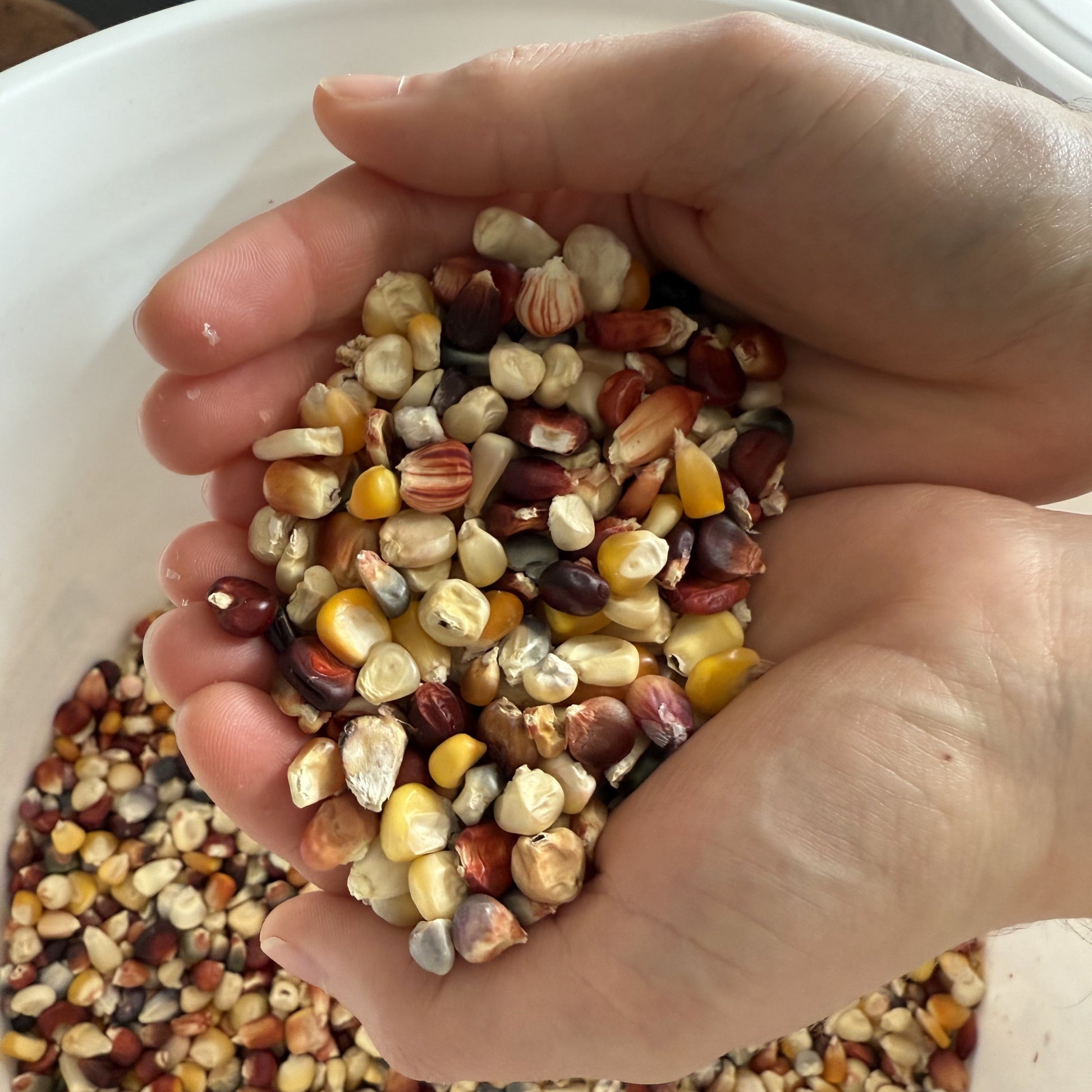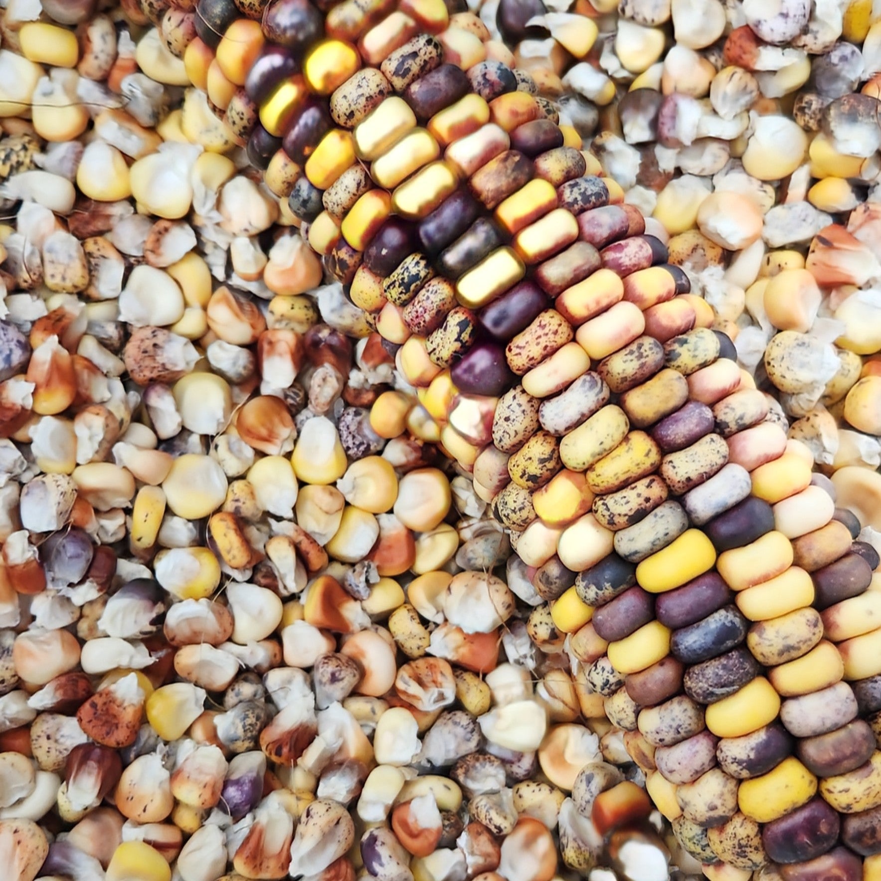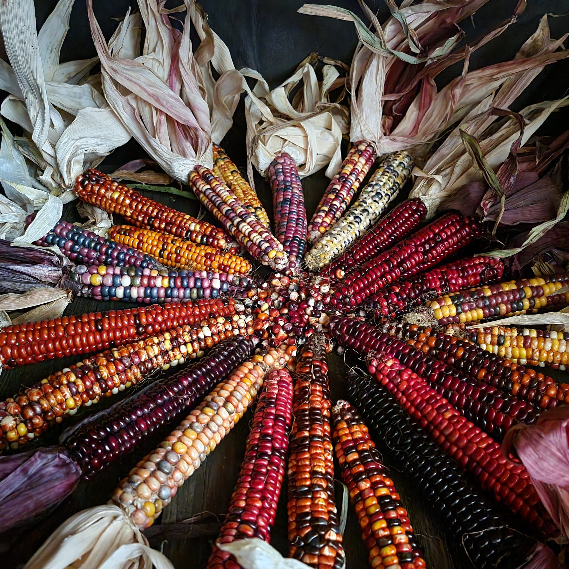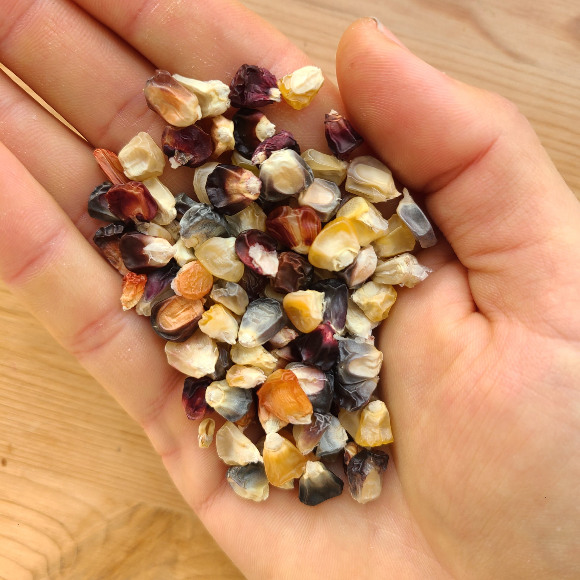 Grain Mix: This is a beautiful mix of different landraces and varieties of corn. You will find kernel sizes ranging from small to large, short and round to long and pointy, red kernels, blue kernels, yellow kernels, white kernels, and all colors between. Due to low popcorn contributions, this mix will also contain popcorn, as well as the usual dent, flint, and flour kernel types. You will undoubtedly find something in this mix that will thrive in your conditions.