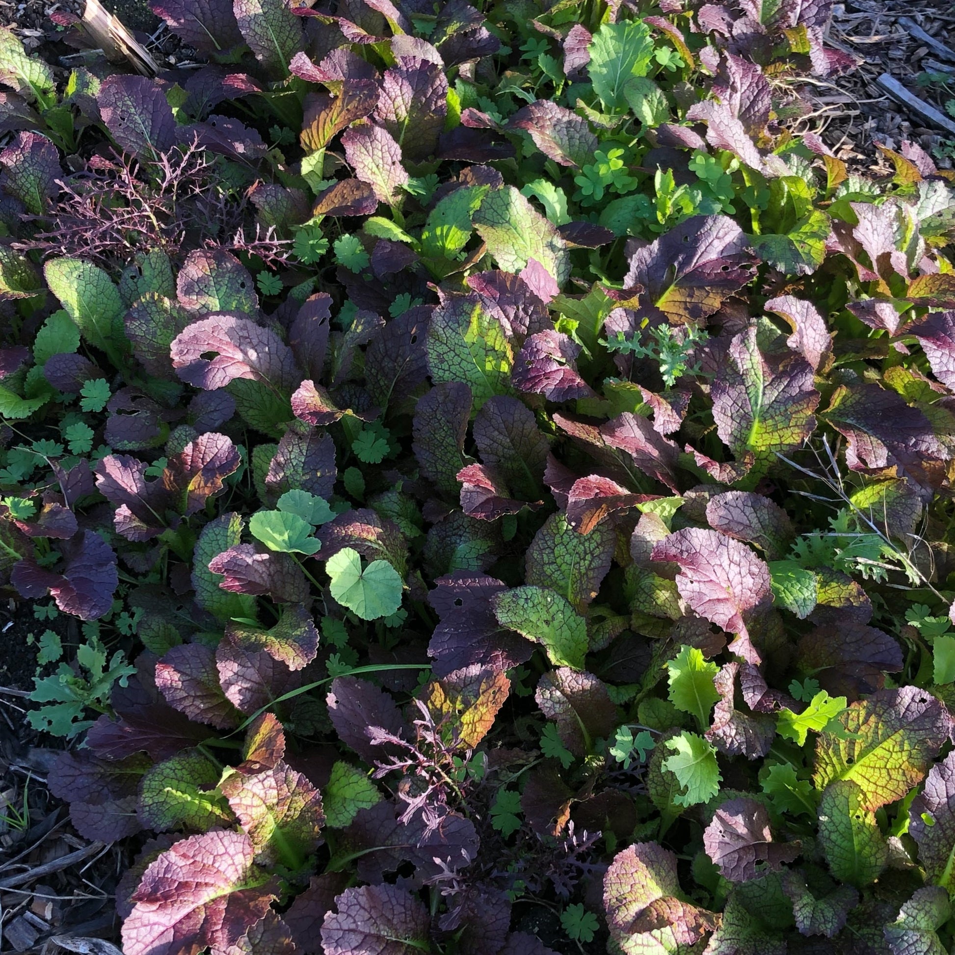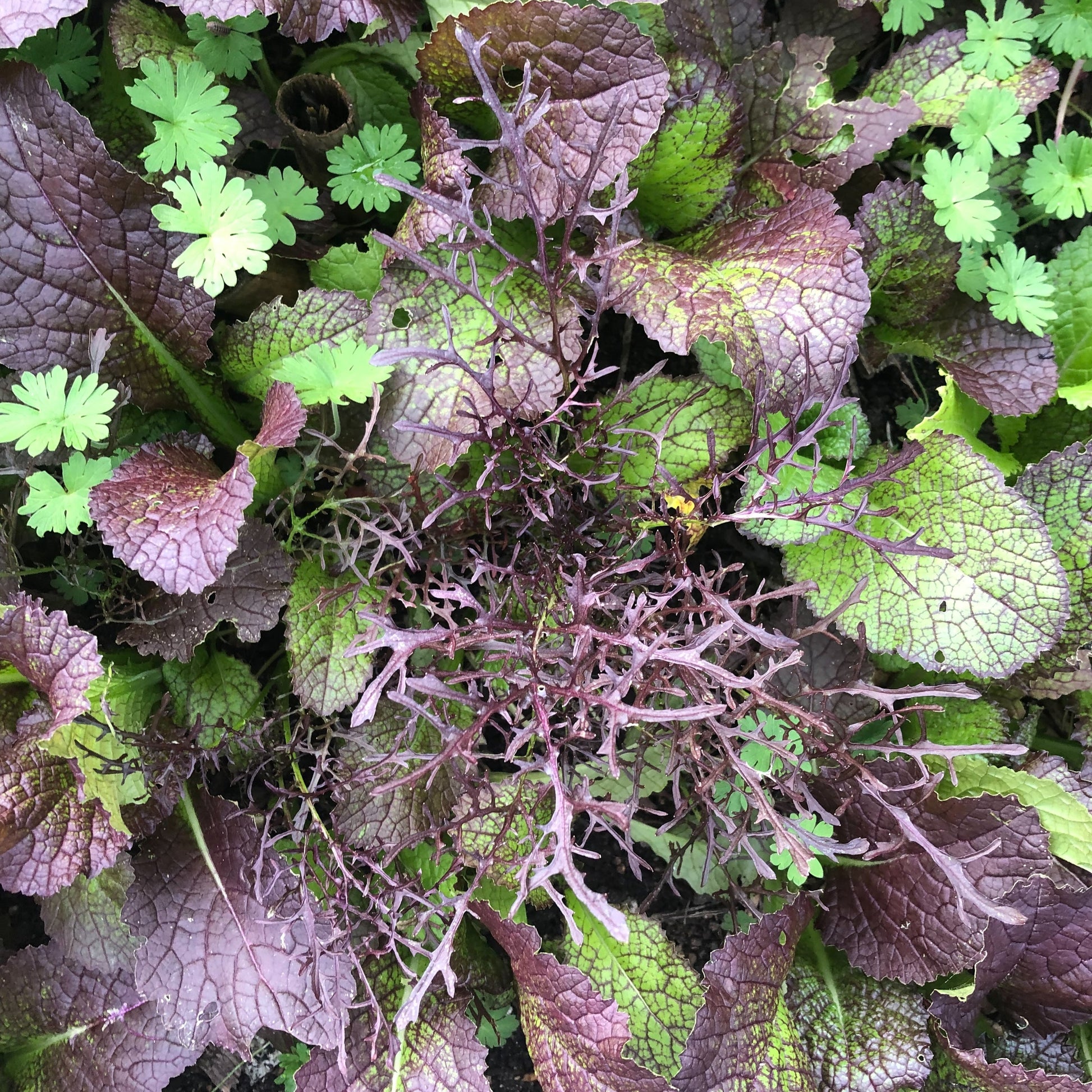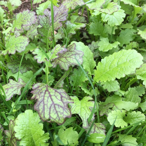 We present to you our 2024 B. rapa (and juncea) seed blend - mustard greens and tatsoi. We have two large contributions from William and Anna and Joseph threw in a small baggie of seeds from his ongoing semi-feral bed border annual populations of Wild Garden Seed's 'Mizspoona Salad Select' and 'Dragon Feathers Mix'. There is likely a broad blend of mustard types in this grex - from mild to spicy, from purple veined to bright green. Rapas and junceas are an excellent early season leafy green - they establish quickly and they can reside quite easily as an understory or border edge green to taller kales and or other annual crops.