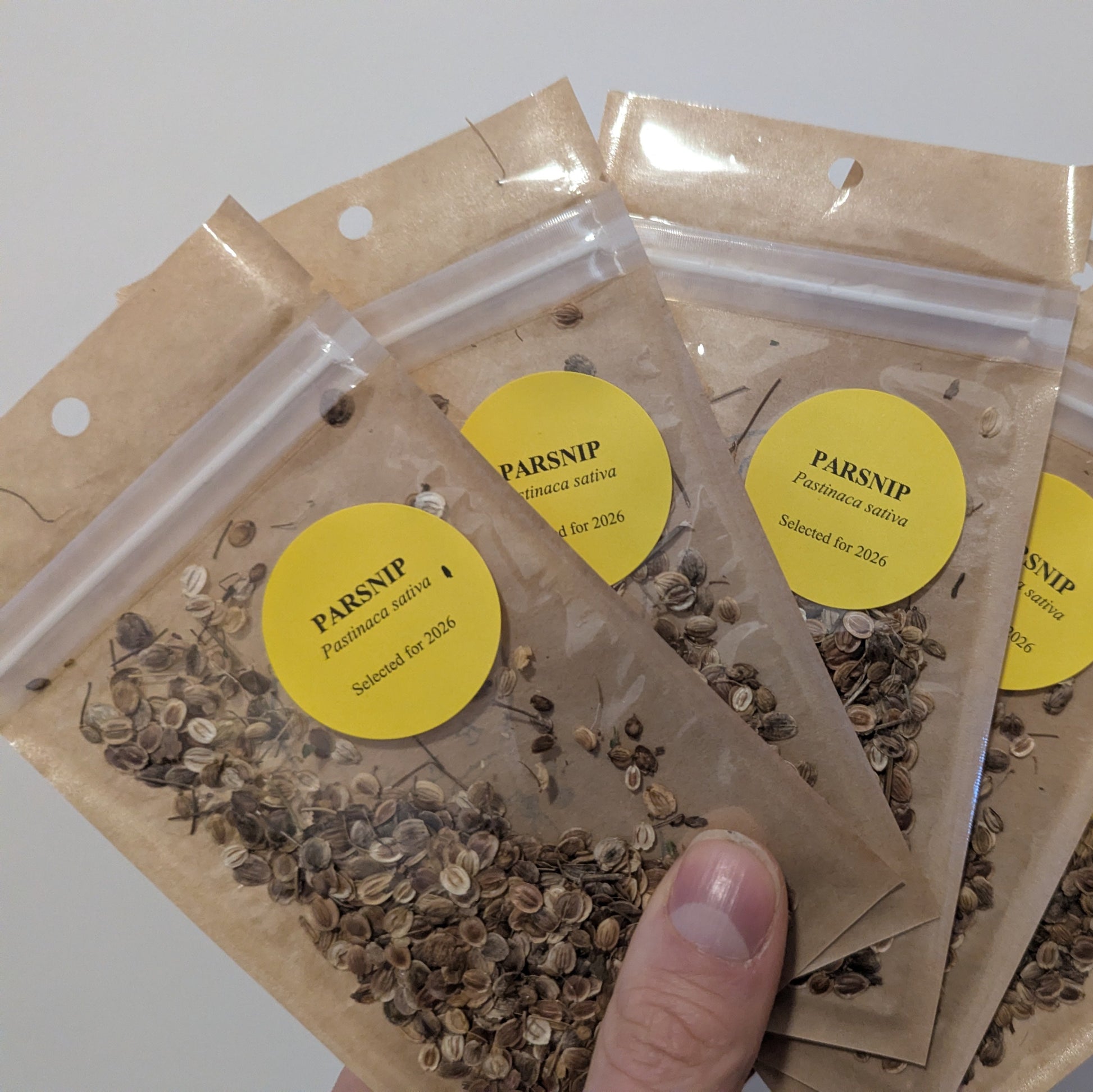 Un mélange vibrant de trois grex canadiens de panais débordant de diversité génétique. Les racines varieront grandement en forme et en taille. La conservation des semences est fortement encouragée afin que cette population continue d’évoluer chez chaque producteur.