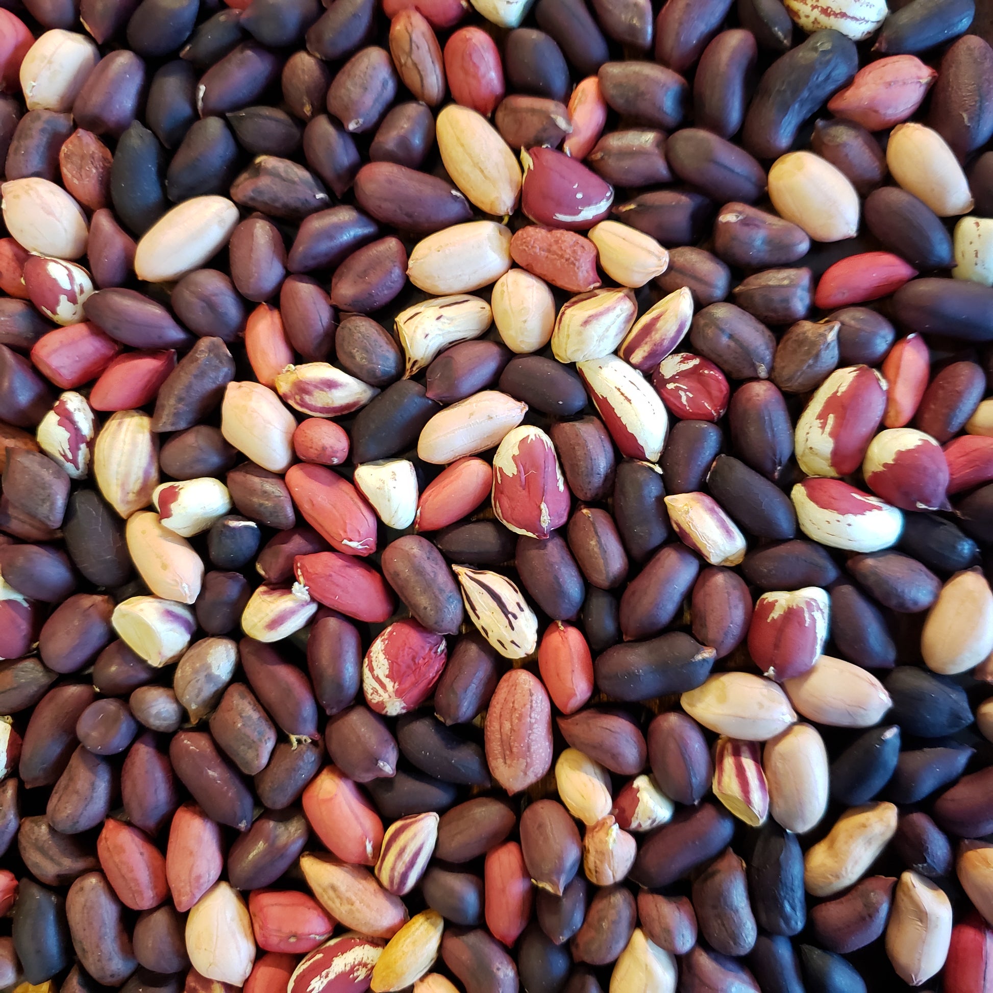This is a mix of about 7 varieties of peanuts that have been grown in close proximity to each other. It contains two varieties that mature in about 90-100 days, and the rest are around 120 days. Peanuts need good water throughout their growing period. Hilling is optional, but highly recommended, and increases yield. This is done by mounding soil around the base of the peanut plants with a hoe or other digging tool. This mix contains purple, white, and tan peanuts. There is a lot of joy to be found in this mix.