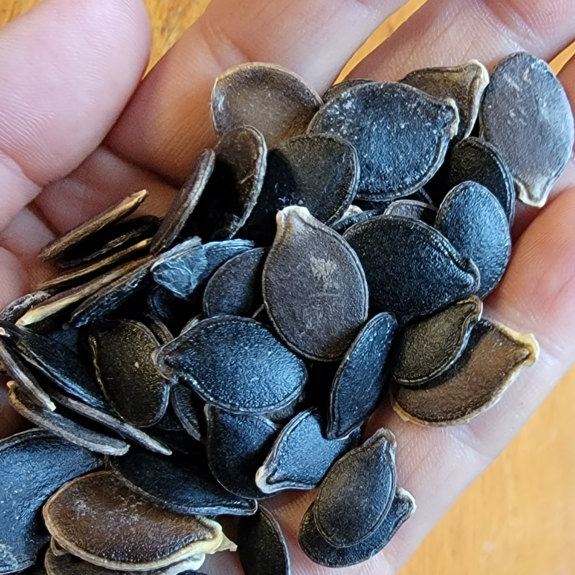 Fig Leaf Gourd (Cucurbita ficifolia), also known as Chilacoyta (Mexico), Alcoyota (South America), Shark Fin Melon (China), Malabar Gourd (India) is native to Southern Mexico, where it is traditionally used to make candy. The plant produces fruits with edible black seeds, and the flesh is white with a mild flavor. Many of these seeds are originally from seeds contributed by Joseph Lofthouse, then grown in coastal California.