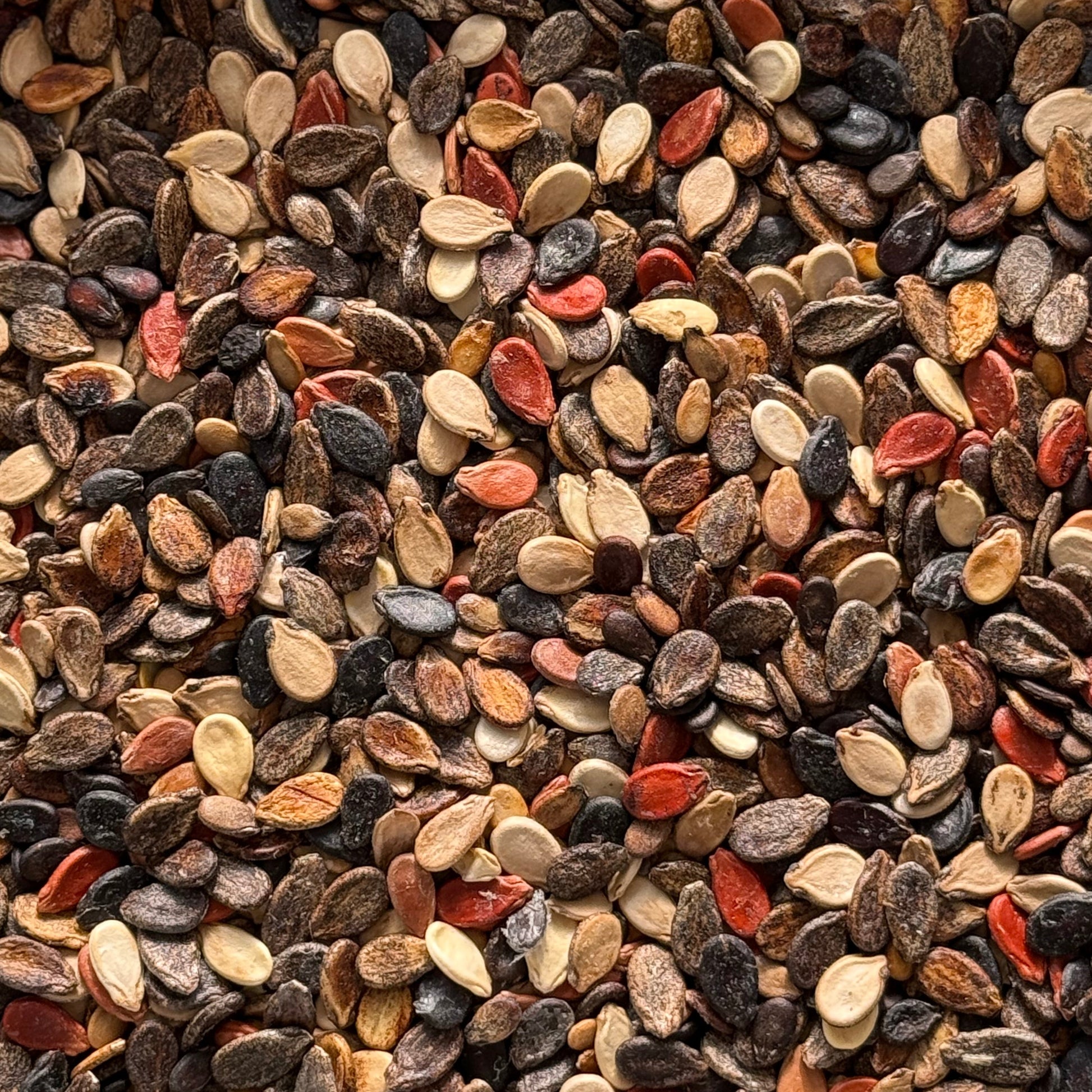 The watermelon seed mix includes many flesh colors and sizes of melon.  There are red, yellow, salmon and pink fleshed types included in the mix. Additionally,  there are all sizes and skin colors as well. Yellow skinned, spotted, striped, solid and several shades of green skinned melons are in this mix. The seeds are different colors and shapes too, loads of diversity to watch for in the garden. Be sure to save some seeds for your collection and to send into GTS.  Thank you for selecting this seed.